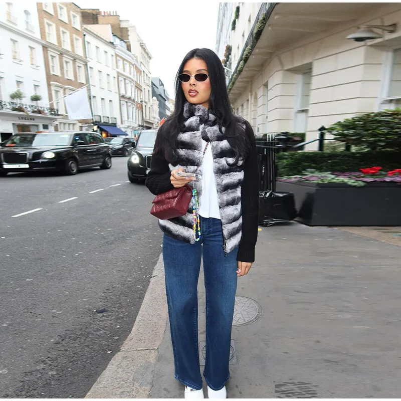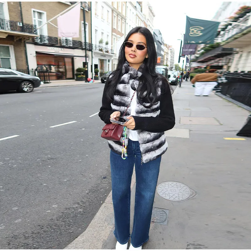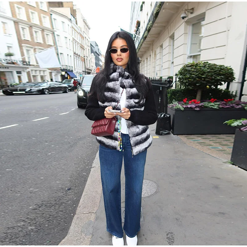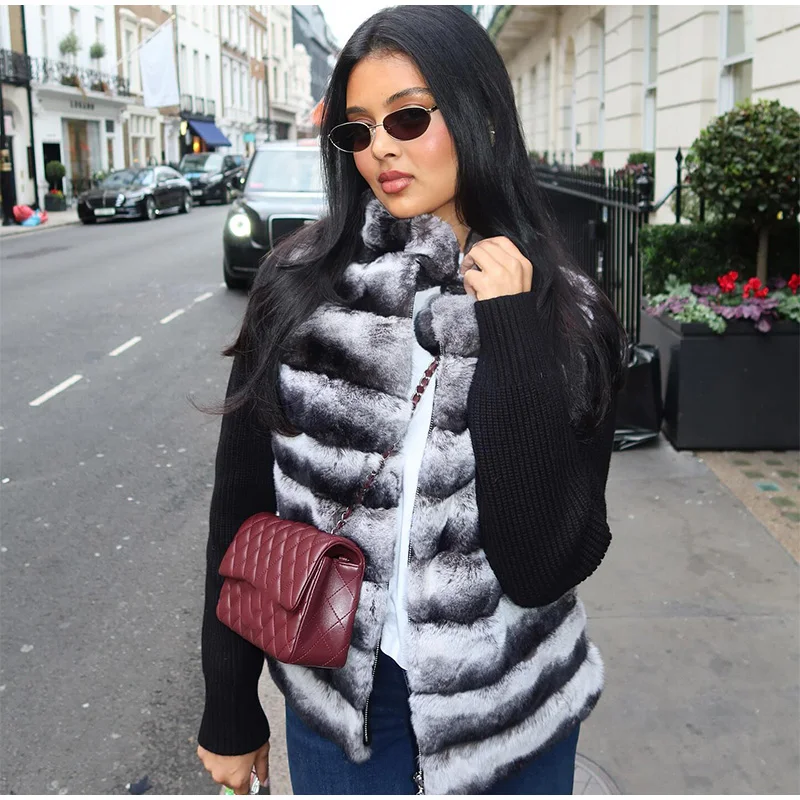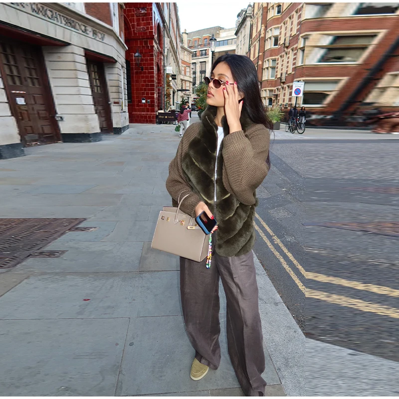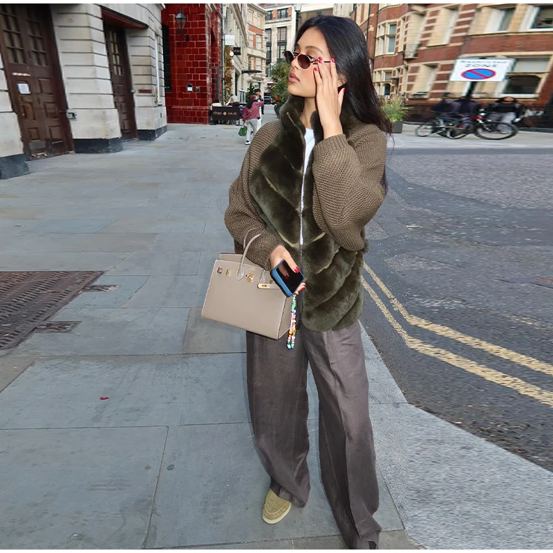 Crafted from premium faux fur with a soft, natural finish, it offers plush warmth while remaining lightweight and breathable. The turn-down collar, front zipper closure, and chic patchwork fur design create a look that’s both fashionable and functional — ideal for city strolls, social outings, or evening wear.