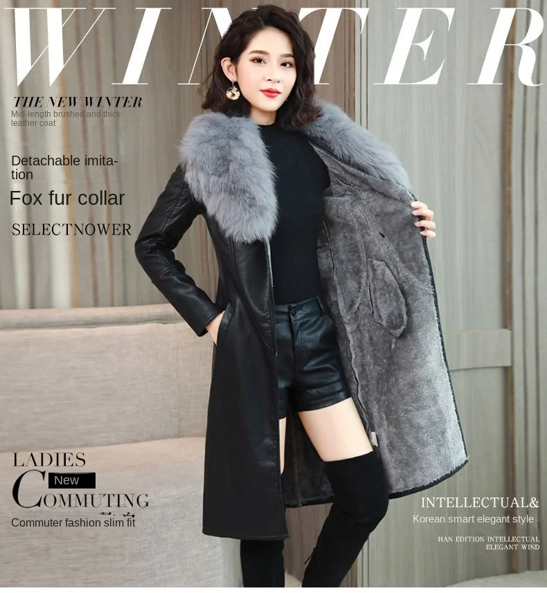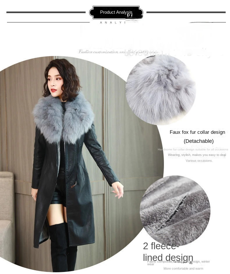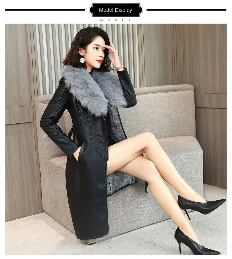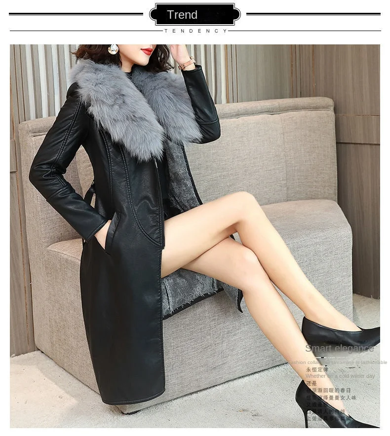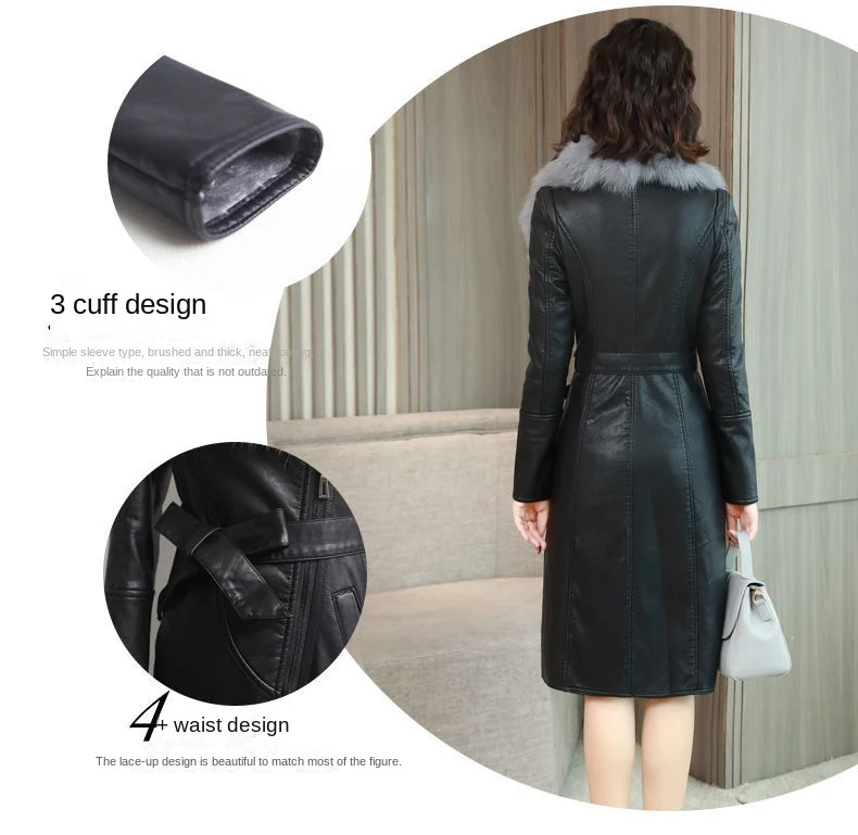 Luxencea™ PU Leather Fur Collar Mid-Length Winter Coat for Women