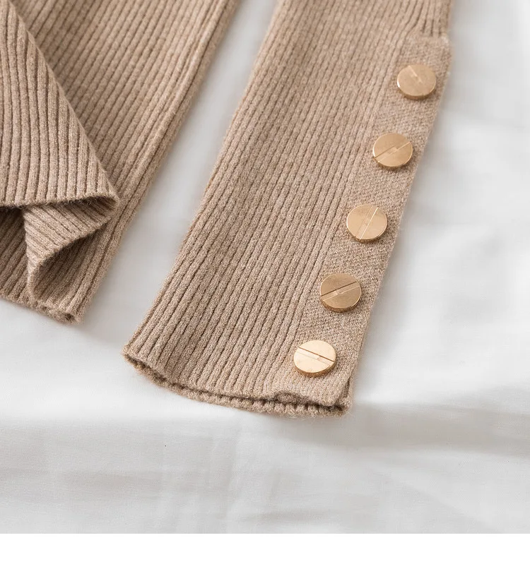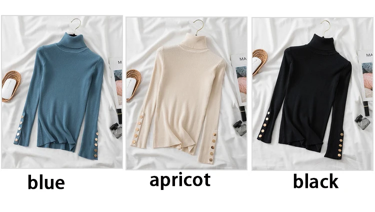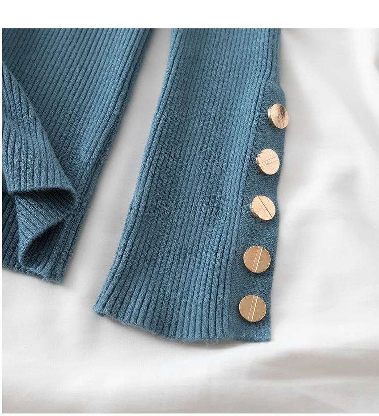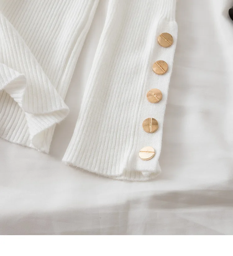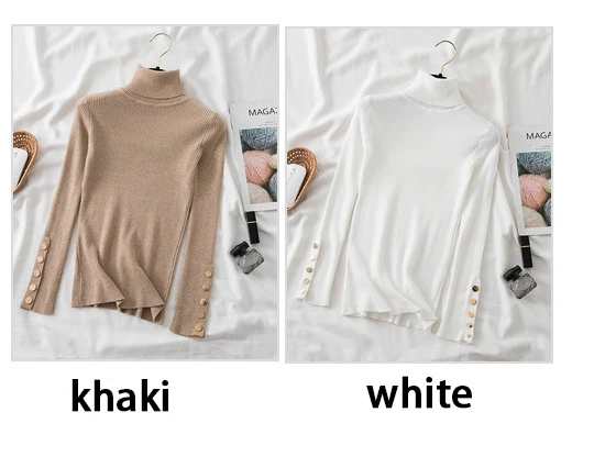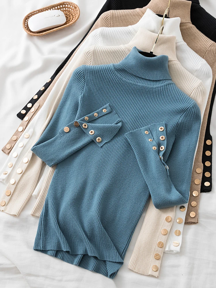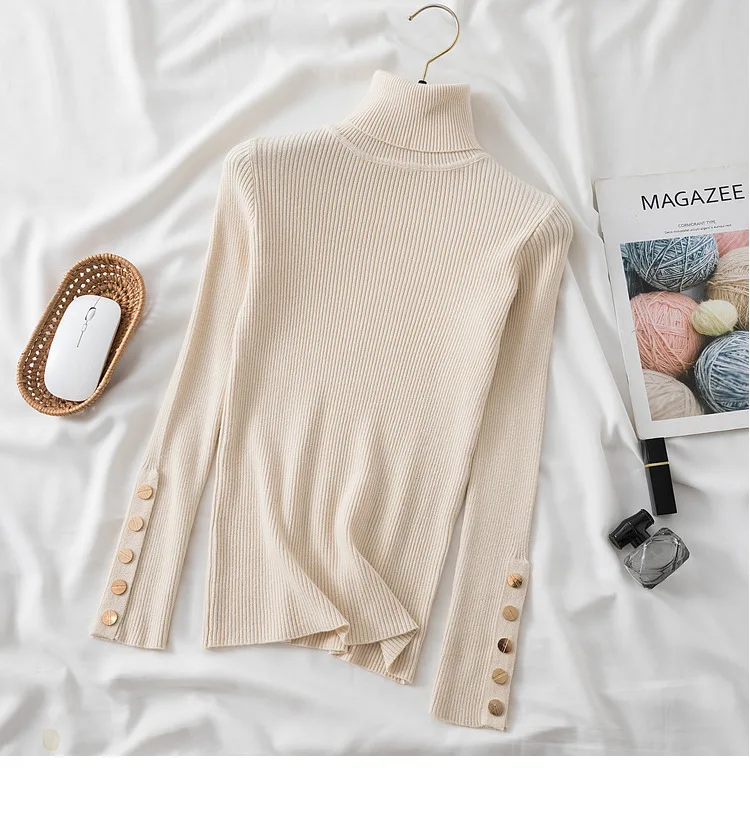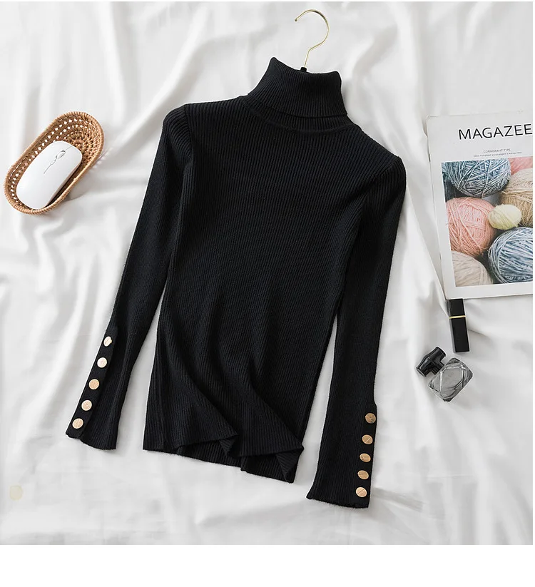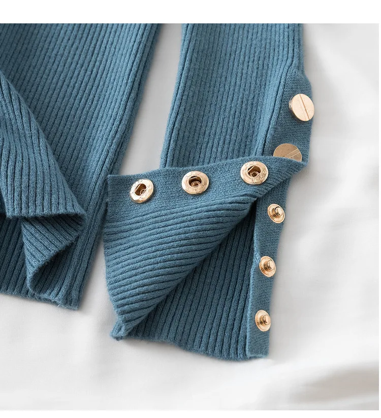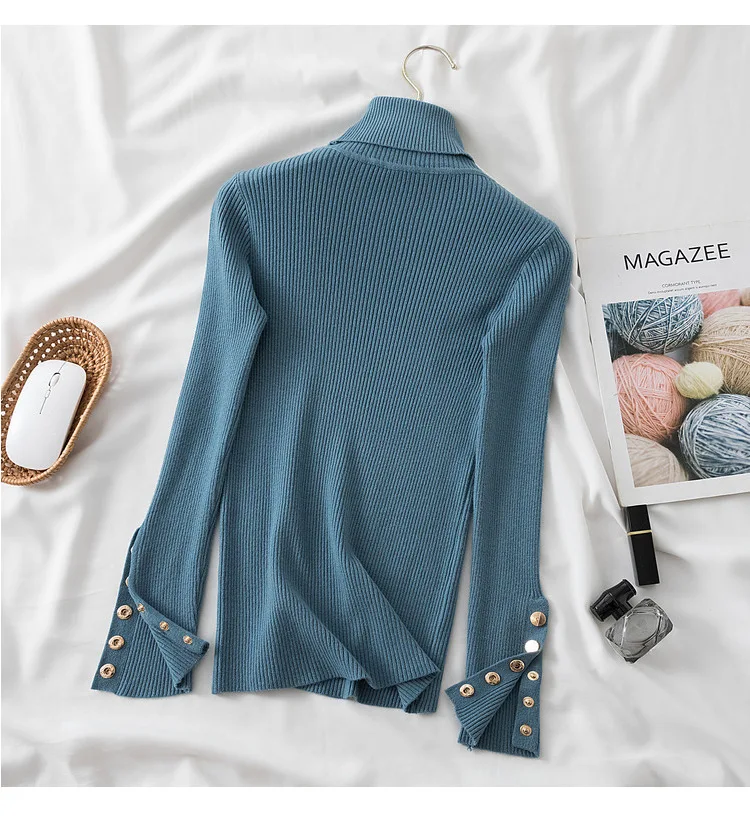 The high-stretch ribbed knit hugs your figure perfectly while allowing easy movement, making it a must-have for chilly autumn and winter days. Featuring a button-accented turtleneck and a slim silhouette, this sweater effortlessly transitions from casual street style to a polished office look.